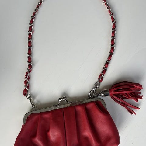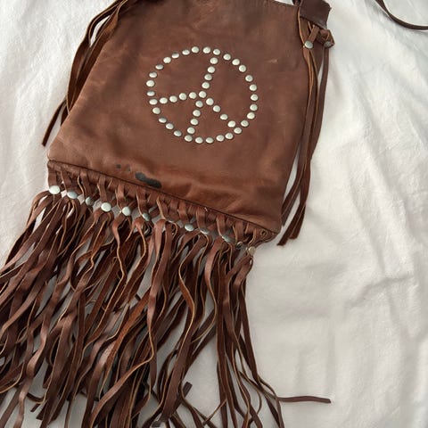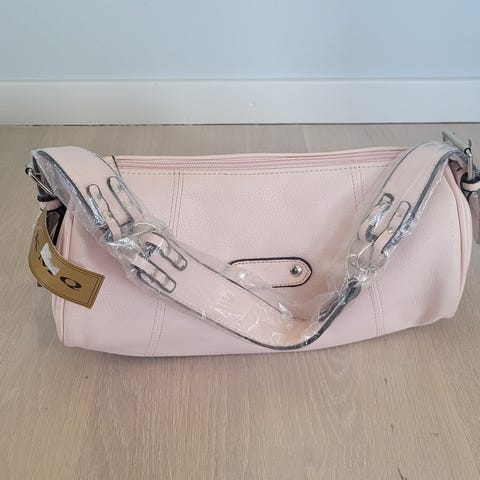 H&M axelremsväska för kvinna i fuskläder. Väskan är i en ljusrosa färg med fransdetaljer på framsidan och flätat axelband. Den stängs med dragkedja upptill och har ett huvudfack med mindre innerficka. Passar för vardagsbruk när man vill bära med sig mobil, nycklar och mindre tillhörigheter. Den här väskan har inte använts och är jättefin, tyvärr finns det ingen som kan använda den just nu så därför säljs den. Priset kan diskuteras men jag säljer den helst för det som jag själv lägger, eftersom den trots allt är i mycket bra skick och fin.