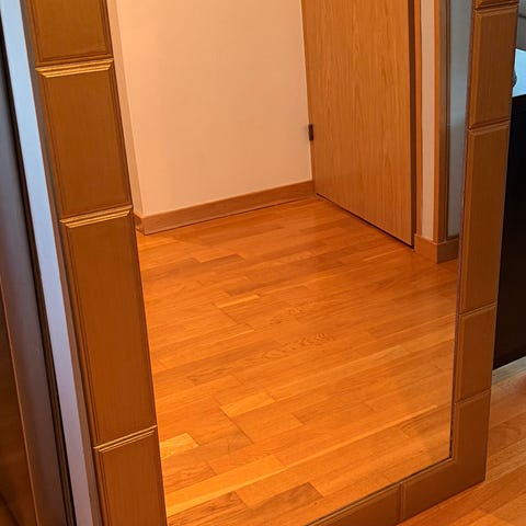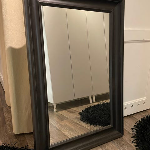 Gedigen spegel i mörk träram. I klanderfritt skick. Dansk möbel.