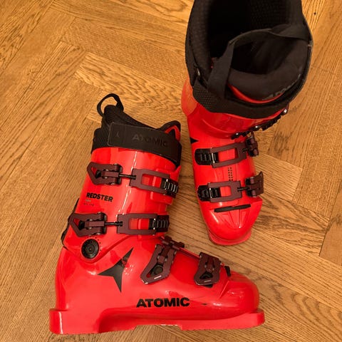 Atomic Redster pjäxor i röd färg. Modellen har fyra spännen och kraftigt skaft med kardborreband upptill. Passar för alpin skidåkning. Insidan har vadderat foder för bättre passform och komfort. Lämpliga för användning med alpina skidor och bindningar som är kompatibla med denna typ av pjäxa.