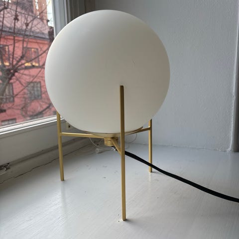 Säljer en stilren bordslampa från Globen Lighting, modell Svenljunga. Lampan har en elegant mässingsfärgad fot och en vit skärm som ger ett mjukt och behagligt ljus. Perfekt som stämningsbelysning i vardagsrum, sovrum eller på ett sideboard.
