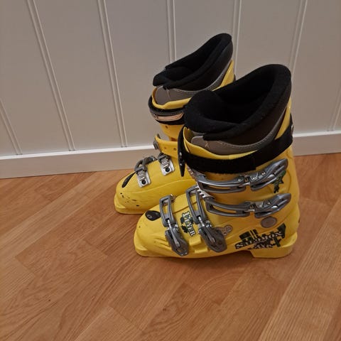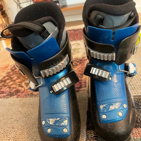 Slalompjäxor för barn. Storlek 22,5 Mondo. Tre spännen. Innerpjäxa med vaddering för ökad komfort. Välanvänd (därav priset) men fullt funktionsduglig.