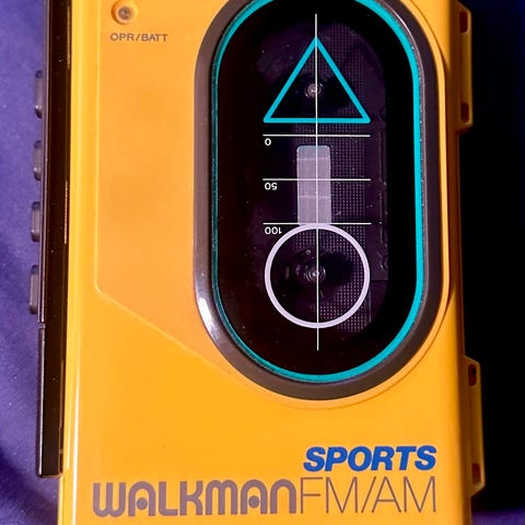 Sony Walkman bärbar kassettspelare i svart färg. Modellen har digital display på framsidan med knappar för styrning av uppspelning och funktioner. Enheten drivs med batterier och har bältesklämma på baksidan för enkel fastsättning på kläder eller väska. Avsedd för uppspelning av ljudkassetter med hörlurar via hörlursuttag.