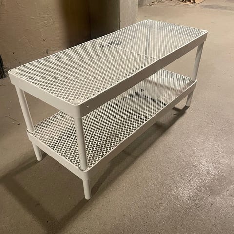 Lätt tvåplanshylla i metall.