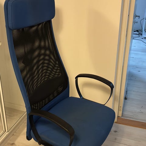 Kontorsstol IKEA Markus i grön färg. Höj- och sänkbar, stabil och bekväm. Säljs utan armstöd. Nypris ca 2500 kr.
