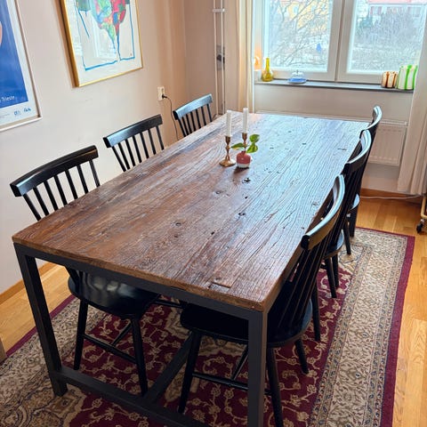 Det finns också 3 st bruna matstolor i konstläder som vi köpte till bordet. Sälja gärna i samma paket.