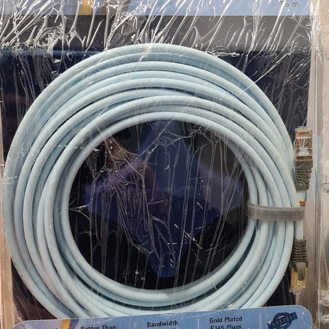 Nätverkskabel i grå färg. Kabeln är avsedd för anslutning av nätverksutrustning, till exempel dator, router eller switch. Passar för användning i hem- eller kontorsnätverk där en fast kabelanslutning önskas.