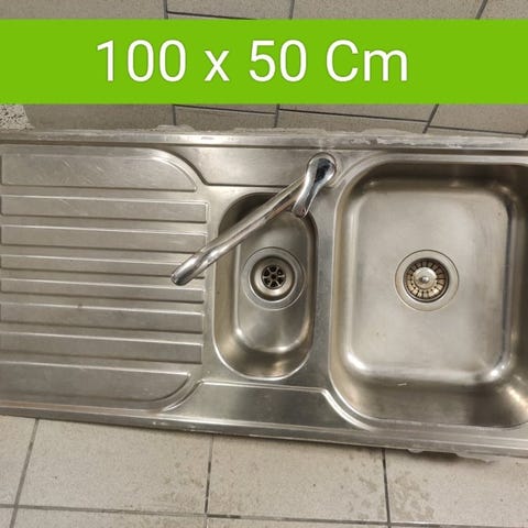 Köksho med dubbla rektangulära hoar i guldfärgad metall. En större och en mindre ho placerade bredvid varandra, båda med bottenventil. Passar för inbyggnad i köksbänk där man önskar två separata hoar för disk och skölj.