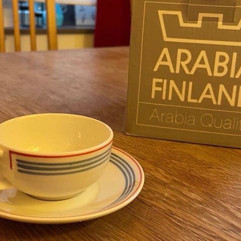 Arabia kaffekoppar med fat porslin blommönster, 6 koppar, 10 fat
