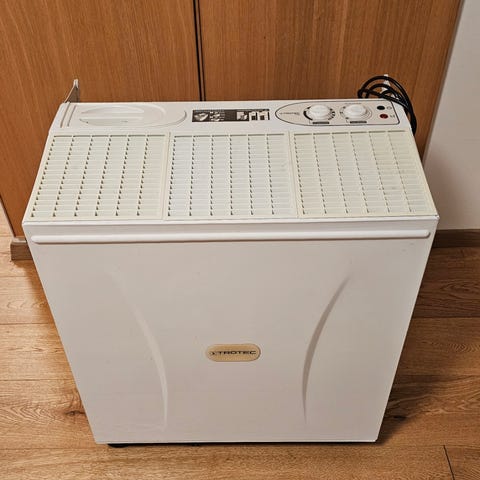 Serva Fuzzy XS luftavfuktare i vit plast med mörk nederdel. Enligt märkplåten har modellen en effekt på 230 W och är avsedd för 220–240 V / 50 Hz. Luftavfuktaren har inställningar för olika luftfuktighetsnivåer, digital display samt indikatorlampor på ovansidan. Passar för inomhusbruk där man vill sänka luftfuktigheten, till exempel i källare, tvättstuga eller andra utrymmen med fuktproblem.