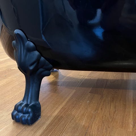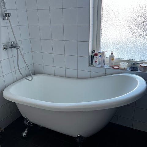 Säljes pga felköp. Fristående badkar med lejontassar i vitt utförande. Klassisk design med upphöjda kortsidor och rundade kanter. Badkaret står på fyra dekorativa tassformade ben som ger stabilitet och ett traditionellt utseende. Passar för installation mot vägg eller fristående i badrum beroende på placering av avlopp och blandare. Materialet är slätt och lätt att rengöra, lämpligt för normal användning i hemmabadrum.