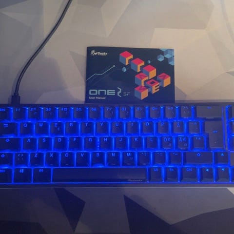 Ducky One 2 SF tangentbord i 65%-layout med svart färg. Kompakt mekaniskt tangentbord med piltangenter och funktionsrad integrerad i flera lager. Tangentbordet har svarta tangenter med vissa blåa tangenter samt extra keycaps och verktyg för att byta tangenter. Levereras med originalförpackning enligt bild. Lämpligt för användning med stationär eller bärbar dator där ett kompakt tangentbord önskas.