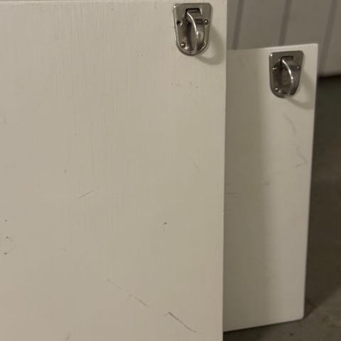 Vita köksluckor (20 st) och lådor i trä (7 st). Luckorna har klassisk profilerad kant och är avsedda för köksskåp. Lådorna är i trä med vita fronter och handtag. Passar för utbyte eller komplettering i befintligt kök, eller för förvaring i exempelvis grovkök eller förråd. Exakta mått och antal delar behöver kontrolleras vid intresse.