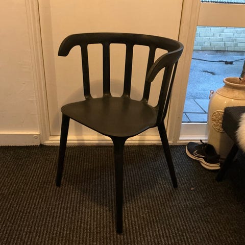 Fina rosa stolar med ben i mässing från Ellos. Använts som skrivbordsstolar i dotterns rum.