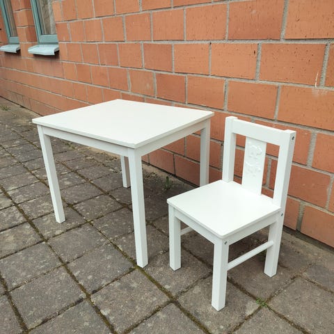 Fantastiskt söt barnmöbel, bord och två små stolar i originalutförande, säljes. Troligen 60-tal. Stabila och i fint skick.