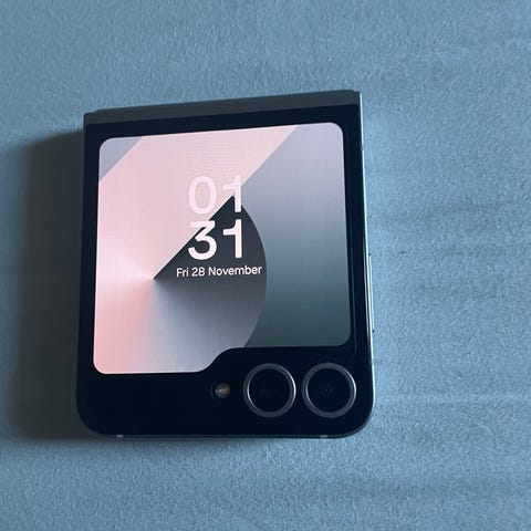 Samsung Galaxy Z Flip3 5G smartphone med vikbar skärm och intern lagring på 128 GB. Modellen tillhör Galaxy Z-serien (flip) och har en yttre skärm för snabb åtkomst till tid och aviseringar samt dubbla kameror på baksidan. Enheten kör Android med Samsungs One UI-gränssnitt och stödjer 5G-uppkoppling. Passar för användning som vardaglig mobiltelefon med möjlighet att vika ihop för kompakt format vid förvaring och transport.