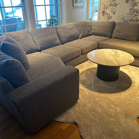 Säljer en stor och bekväm grå hörnsoffa i mycket fint skick. Soffan är nyligen rengjord med våtdammsugare och i toppskick förutom ett litet märke på en av sittdynorna. Inga andra skador eller fläckar.