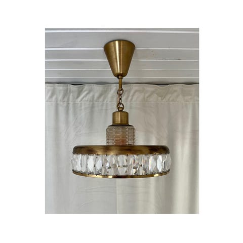 Taklampa av massiv mässing och glas design Carl Fagerlund tillverkare Orrefors . Vintage och vackert taklampa. Diameter ca 34 cm.