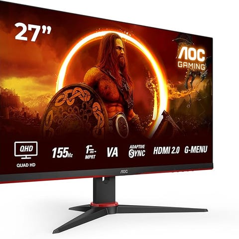 AOC Q27G3XMN med 2560x1440 QHD upplösning är en 27-tums 180Hz VA LCD, som har mer kontrast (djupare svärta) än IPS-skärmar.
