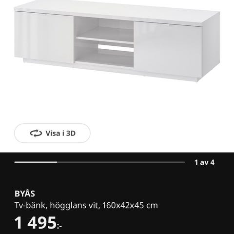säljer helt ny Ikea tv bänk som köpte för en månad sen, säljer på grund av flytt, finns fortfarande blåplåster på fram kanter se bilder. köpte för 1495kr