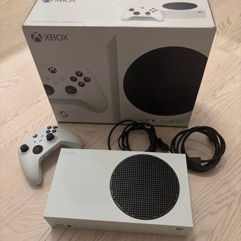 En trådlös Xbox-handkontroll i vit färg ingår enligt bilderna. Handkontrollen har standardlayout med två styrspakar, styrkors, axelknappar och menyknappar. Konsolen kan användas för spel, streaming och andra underhållningsappar som stöds av Xbox-plattformen.