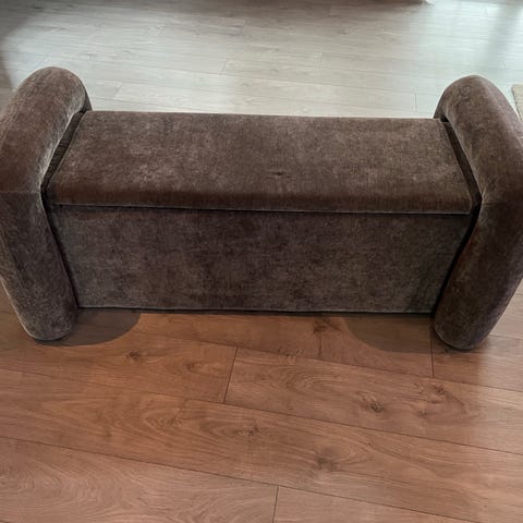 Mått ca: längd ~120 cm, höjd ~45 cm.I fint skick, hel och stabil. Normalt bruksslitage (velouren skiftar lite beroende på hur man borstar den, inget trasigt eller fläckigt).