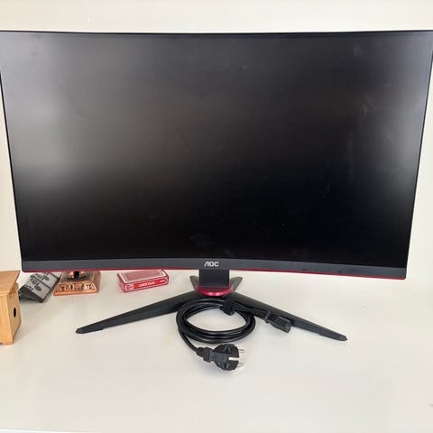 AOC böjd datorskärm med 27 tum skärmstorlek i svart utförande. Skärmen har en böjd panel som ger en mer omslutande bildyta. Monterad på höjdjusterbart stativ med kabelgenomföring. Lämplig för datoranvändning som arbete, studier och spel. Anslutningar och övriga specifikationer framgår inte av uppgifterna och kan kontrolleras vid behov på modellens baksida eller i manual.