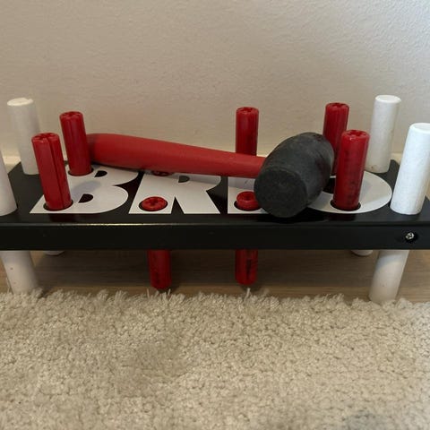 Klassisk BRIO bankbräda/bultbräda i trä med tillhörande klubba. Perfekt för barn som gillar att hamra och utveckla sin motorik. Från 90-talet. Fint använt skick, finns tecken på användning.