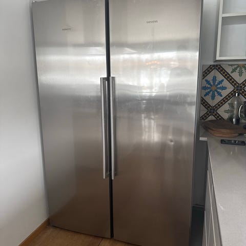 Kyl över och frys under med separata dörrar. Kyldelen har flera hyllplan, grönsakslådor och förvaring i dörren. Frysdel med flera utdragslådor för organiserad infrysning och förvaring. Baksidan har synlig kylslinga.