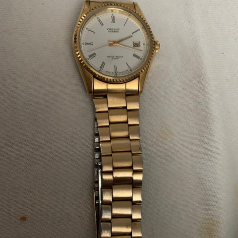 Klockan har datumvisning och original guld/stållänk. Även ett nytt batteri kommer att sättas i efter ditt köp.