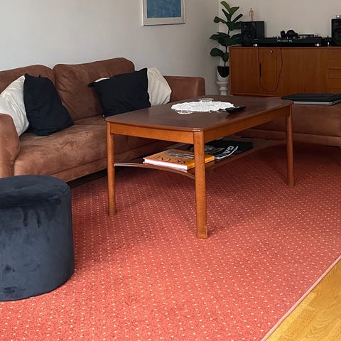 En fin matta i färgerna beige/brun med fransar. Mattan är i fint skick. Mattan har legat under ett matrums bord som använts vid storhelger och andra festligheter