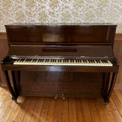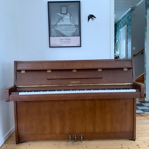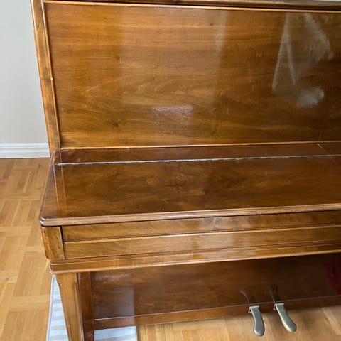Ett mycket fint och relativt nätt piano av danska Hindsberg. Tillverkat i Finland 1978 i vad som framstår som teak.