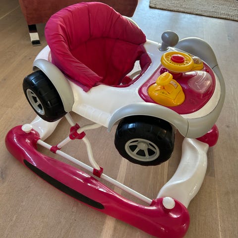 Säljer en gåstol i mycket bra skick. Den går också att göra om till en gunga. Olika billjud när man trycker på knapparna.