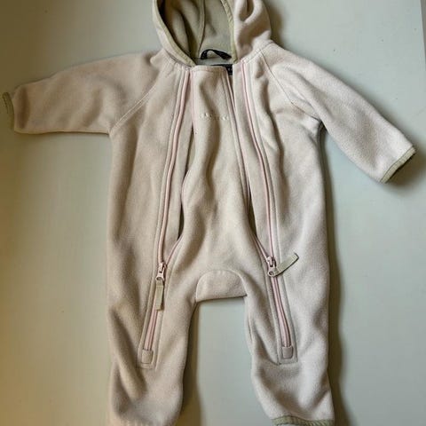 Vindfleeceoverall i storlek 62 från Lindex i färgen Light dusty green. Mjuk overall i vind- och vattentät fleece. Overallen har ett mjukt trikåfoder och vikbara ärm- och benslut samt huva och dubbel dragkedjestängning. Trikåfodret har ett mönster med igelkottar. I mycket bra skick, endast använd 3-5 ggr. Inga fläckar eller håll. Djur- och rökfritt hem.