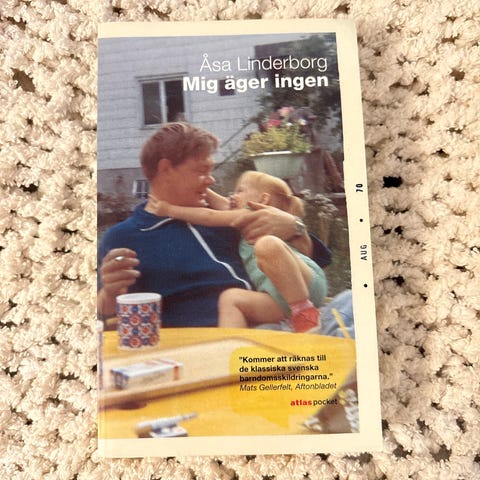 Atlas Mig äger ingen bok i pocketformat på svenska. Författare Åsa Linderborg. Utgiven av Atlas pocket. ISBN 978-91-7389-321-3. Passar för läsare som vill ta del av en självbiografisk skildring av uppväxt och familjeliv i Sverige.