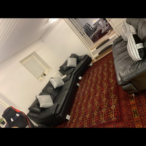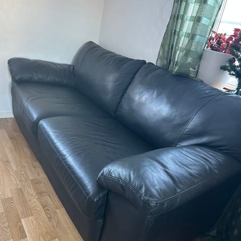 2 st 3 sits soffa med 2 st snurrfåtöljer mörk blå nästan som svarta