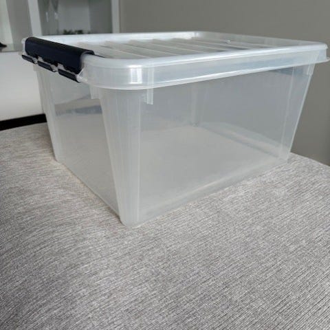 1 st Ikea samlalåda(78x56x43cm)130l med lock och låsclips. Har en liten spricka i ena hörnet(se bild)var det när jag köpte den men inget som stör funktionen