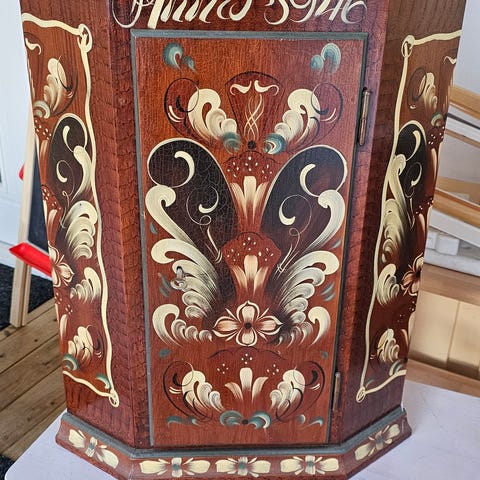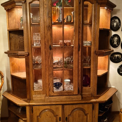 Säljer en mycket vacker och välbevarad antik köksbuffé i två delar. Skåpet kommer ursprungligen från Tyskland och är tillverkat mellan ca 1890 och 1920.