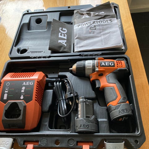 Oanvänd skruvdragare med tillbehör med kvitto och 3 år garanti