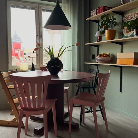 Smokey matbord 80x80 + 2 Karl pinnstolar