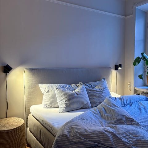 Sänggavel från Sletvol med framsida i beige grövre textil med svarta ränder. Neutral färg som kan kombineras med olika typer av sängar och inredningsstilar. Vi tyckte den passade utmärkt mot linnetyger och jordnära färger.