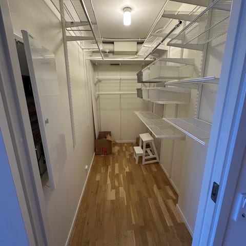 Vi har gjort om våra gaderober och hoppas dessa Elfa-backstativ hittar ett nytt hem.