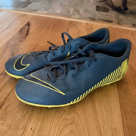 Adidas fotbollsskor för junior i storlek 38 Skorna är blå/lila med neonfärgade detaljer och dobbar under sulan anpassade för spel på gräs eller konstgräs. Ovandel i syntetmaterial med snörning för justerbar passform. Innersula i kontrasterande färg. Lämpliga som fotbollsskor för barn.