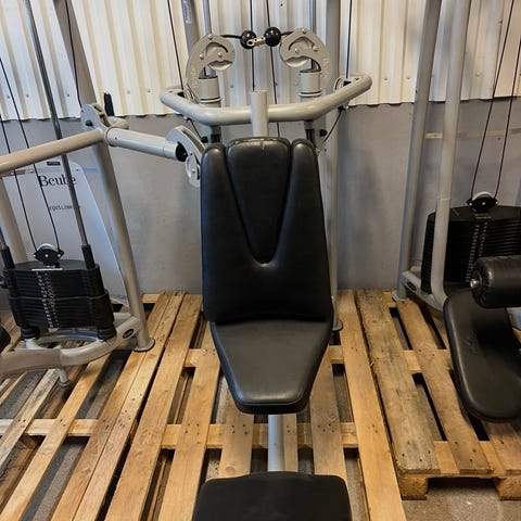 Träningsmaskin från fabrikatet Bcube. En bröstpress som tidigare varit ägd av Nordic Wellness