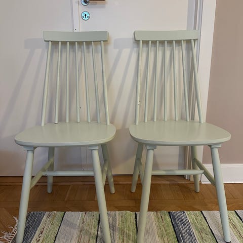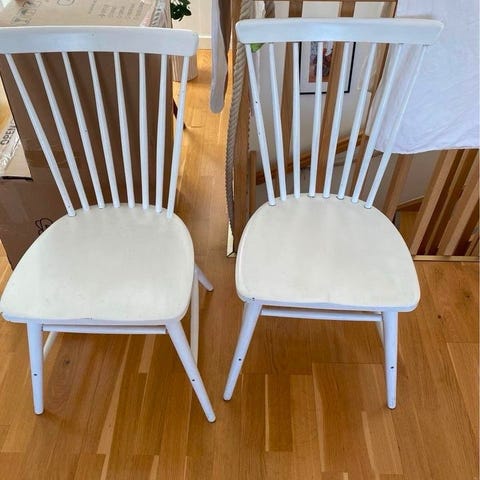 Vi säljer även två vita pinnstolar. Så vi kan göra ett bra avtal för 500 för alla fyra.