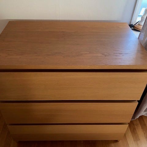 Tre lådor plats för mycket kläder tex. Dock är funktionen så att nedersta lådan trilskas lite. Men som sagt superfin. Nypris ca 1500-2000:-