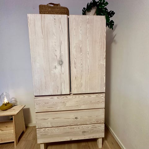 Obs: Skåpet är endast ihopmonterat, på baksidan finns en krökt list (se bild) som enkelt kan ersättas av hemmafixaren, alt den som har lite större barn där skåpet ej behöver förankras i en vägg.