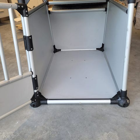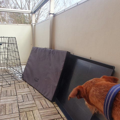 En fin canvas bur till hund. Vi har haft den som bil bur till våran huskey men då hon inte finns mer behöver vi inte buren. Den är köpt på Dogman och den är lätt att förvara då den blir helt platt när den är nedmonterad. Den går att öppna uppifrån, från ena långsidan och ena kort sidan. Den är hel och inga skador.
