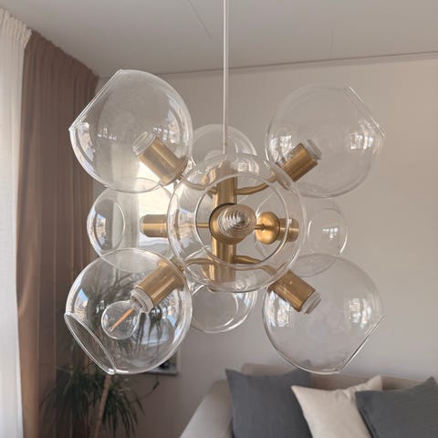 Jag är på jakt efter en trearmad lampa från Svenskt Tenn, model 2431. Vill du kanske bli av med din? Lampskärmarnas färger spelar ingen roll, de kan jag lätt lösa.