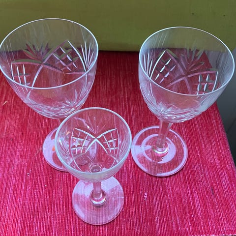 6 st Boda vinglas i kristall med druvdekor i övre kanten,