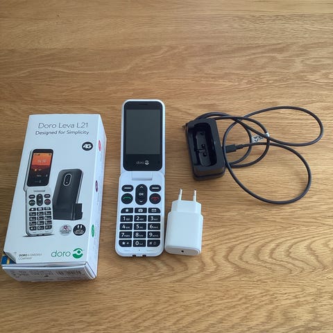 En fällbar mobiltelefon utformad speciellt för seniorer, med betoning på användarvänlighet, högt och tydligt ljud, stora knappar och säkerhetsfunktioner.